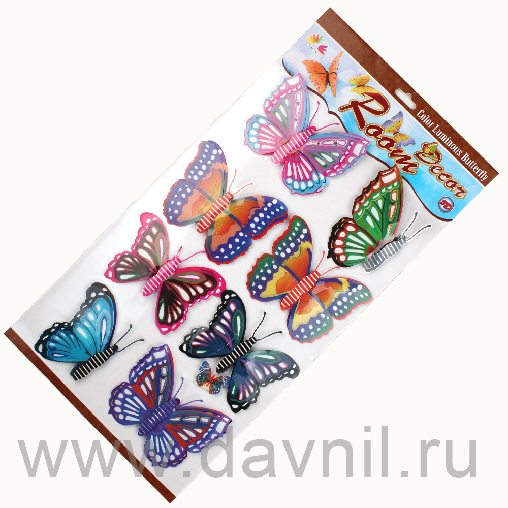Бабочки декоративные 5D на липучке 8 шт. цветные 27/2