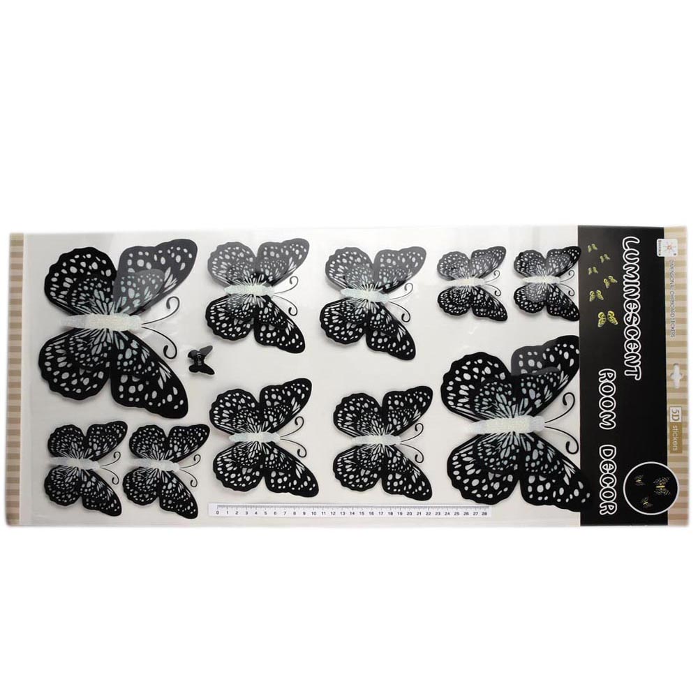 Бабочки декоративные 5D на липучке с блёстками 10 шт. чёрно-белые 29/8