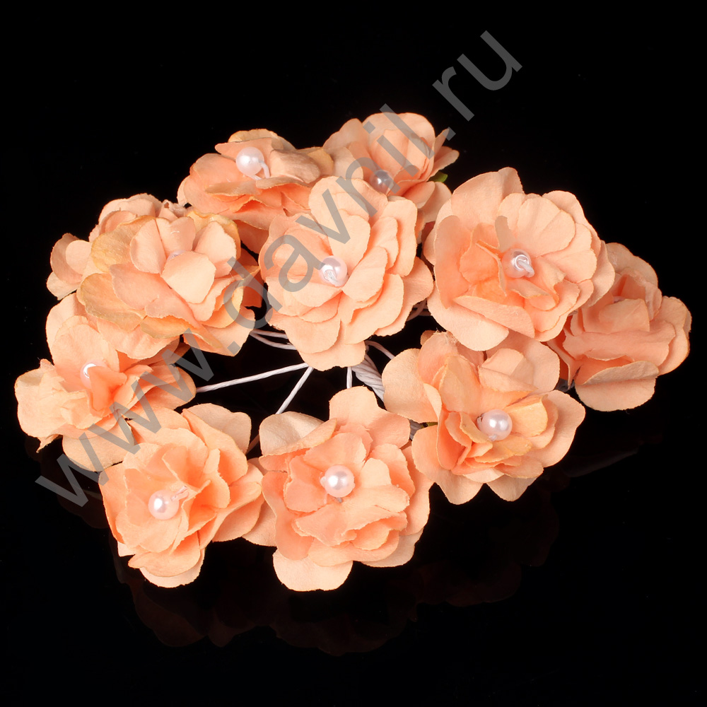 Бутоньерка "Открытый пион с жемчугом" 10 шт. персиковая