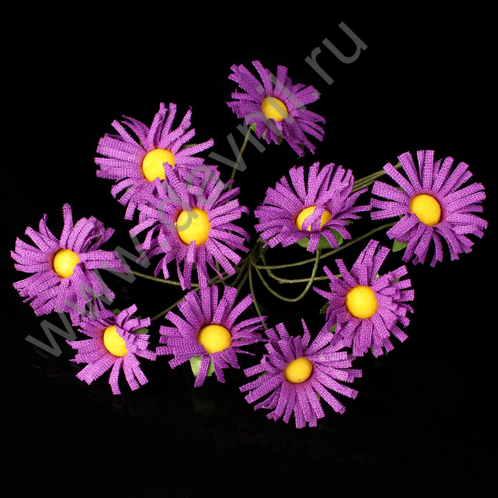 Бутоньерка тканевая "Ромашка" 10 шт. фиолетовая