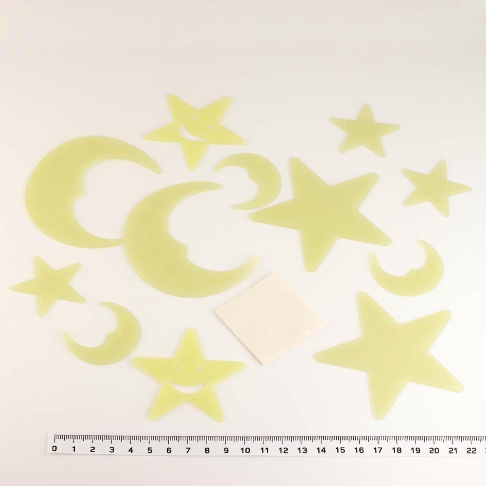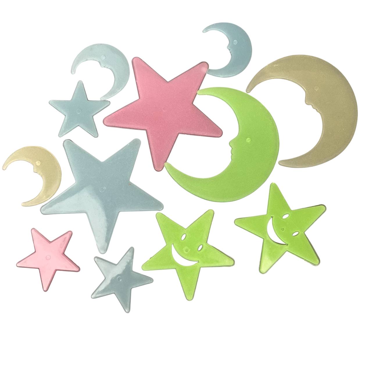Набор Луна со звёздами фосфорные 12 шт цветные