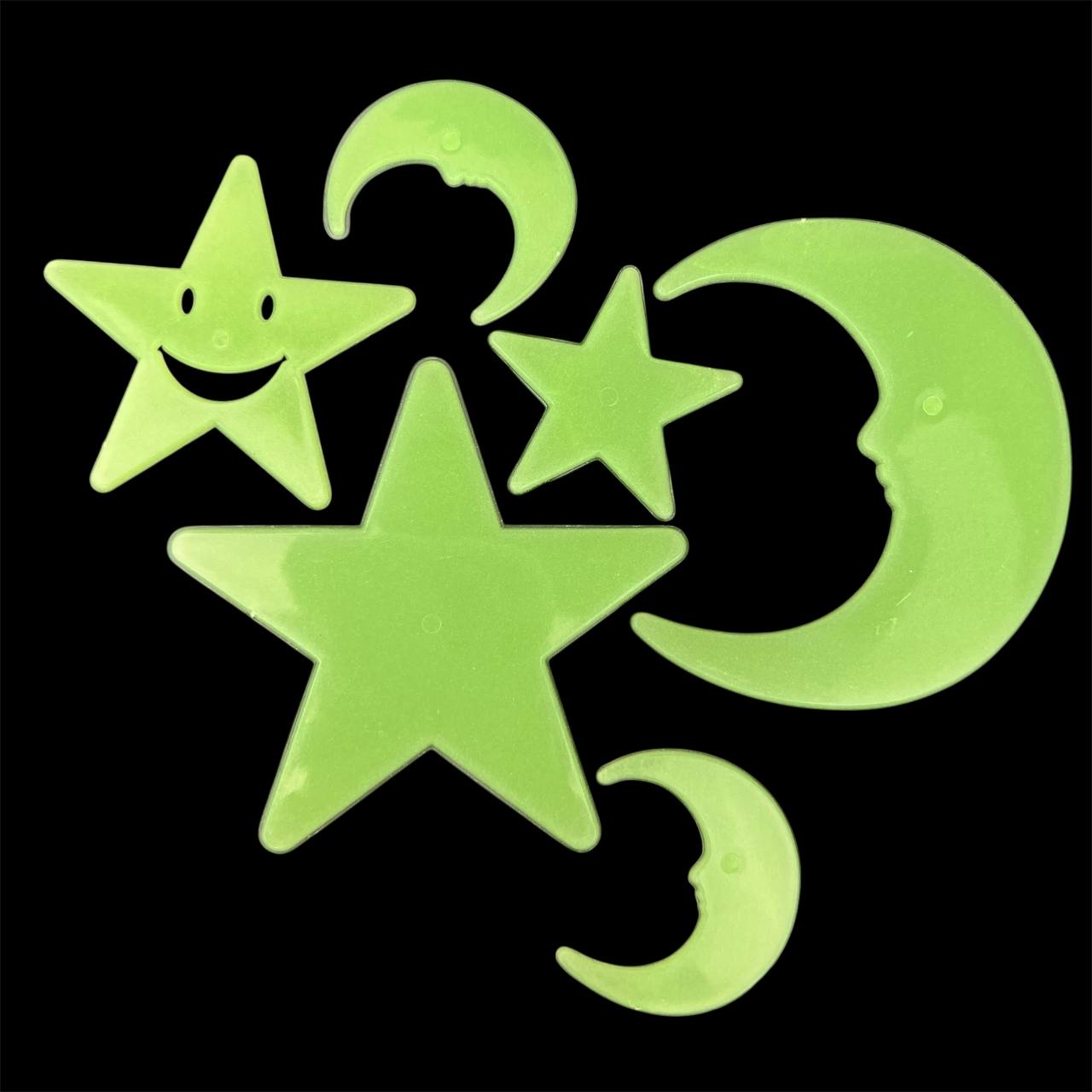 Набор Луна со звёздами фосфорные 12 шт зелёные