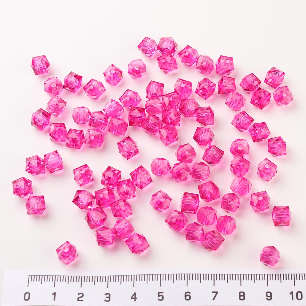 Бусины граненые квадратные однотонные 8 мм 400 гр фуксия 8