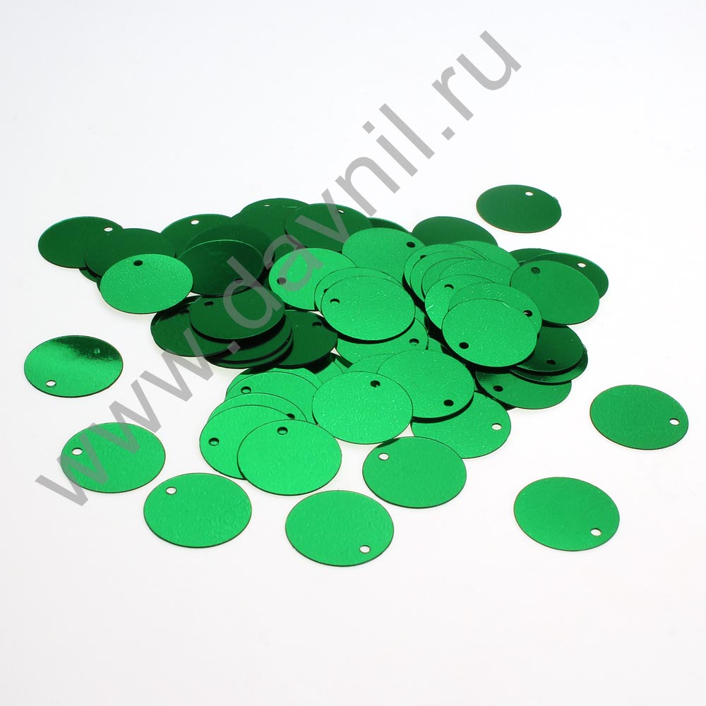 Пайетки пришивные круглые d=15 мм 50 гр изумрудные