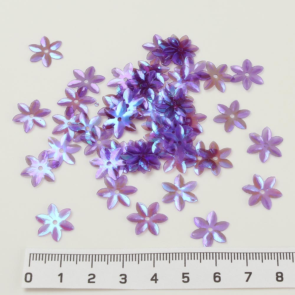 Пайетки пришивные цветок 15 мм 50 гр голограмма сиреневые