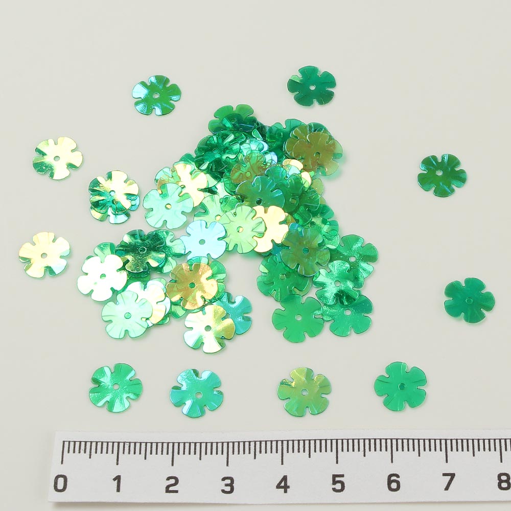 Пайетки пришивные цветок 10 мм 50 гр голограмма зелёные