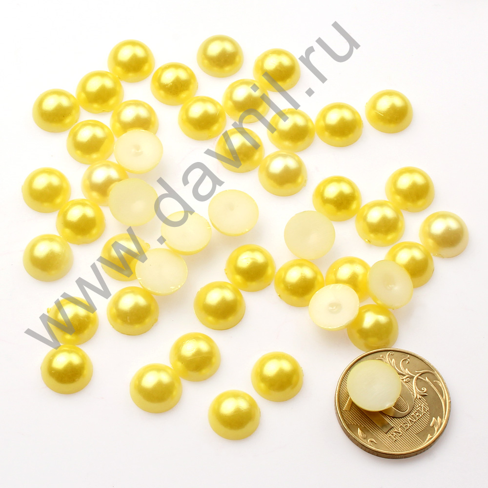 Полубусины под жемчуг клеевые 10 мм 400 г жёлтые с перламутром