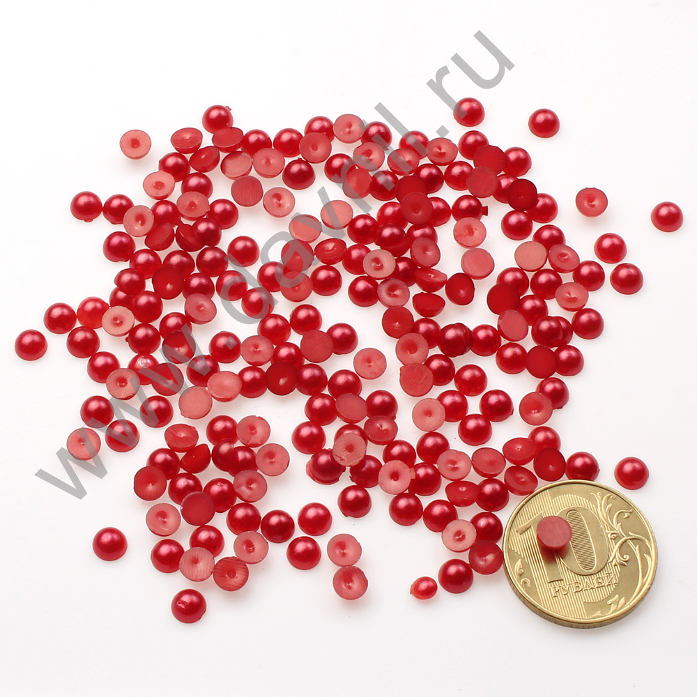 Полубусины под жемчуг клеевые 6 мм 400 гр красные с перламутром