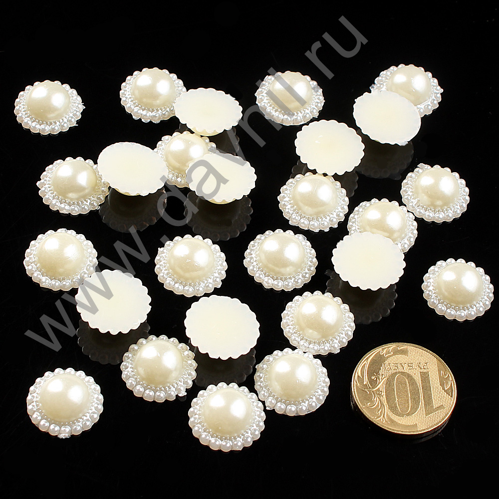 Полубусины под жемчуг ромашка 16 мм 400 гр бежевые с перламутром
