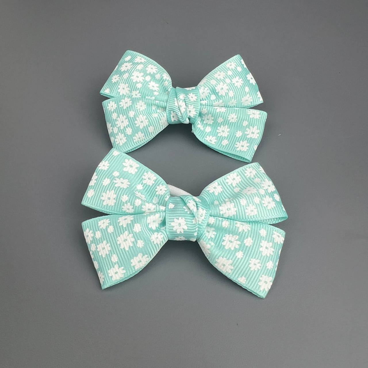 Бант для волос "маленькая принцесса" на резинке мятный 2 шт в цветочек