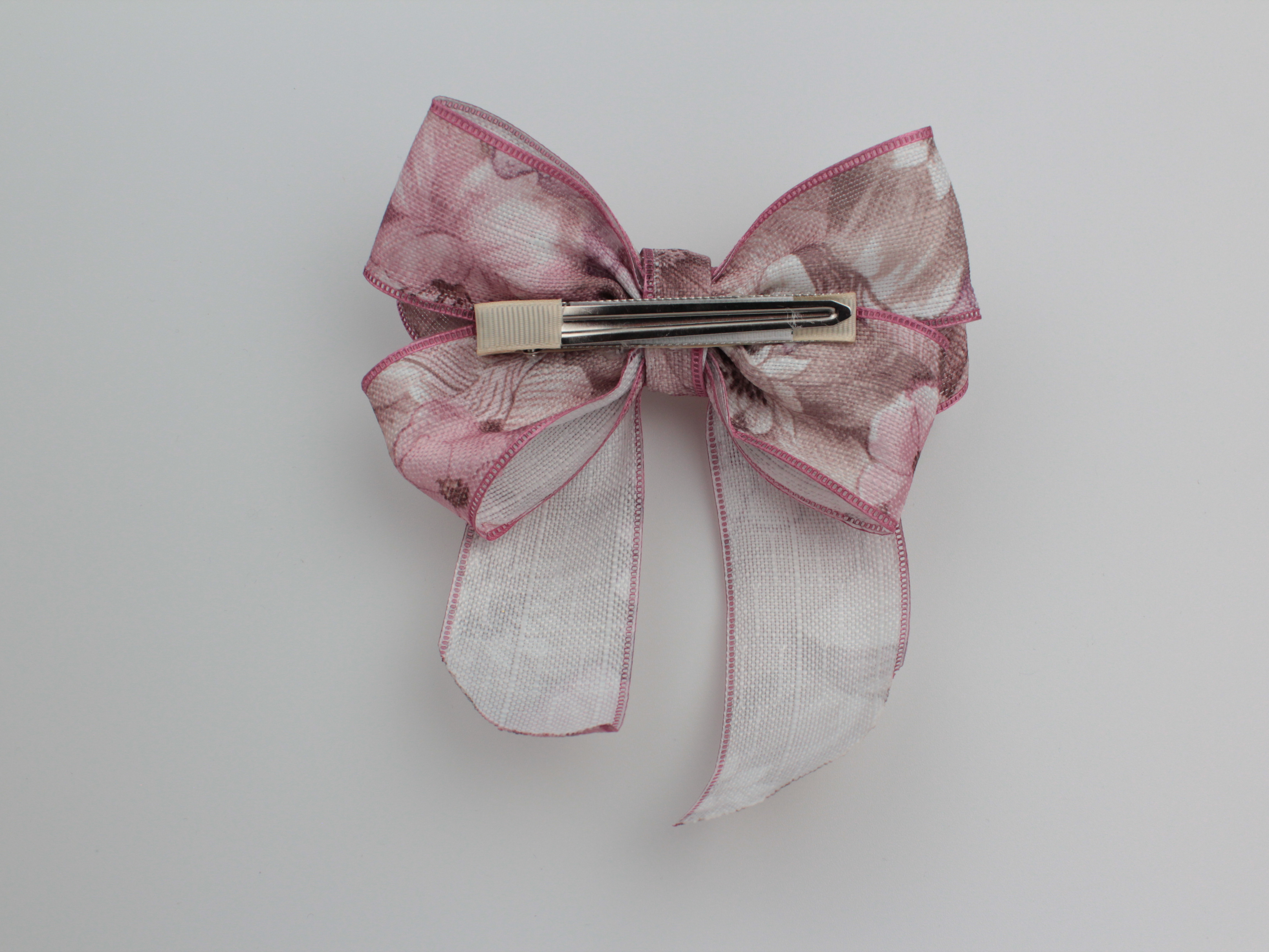 Бант для волос " Мальвина " на уточке бежевая пенка с цветами, лён