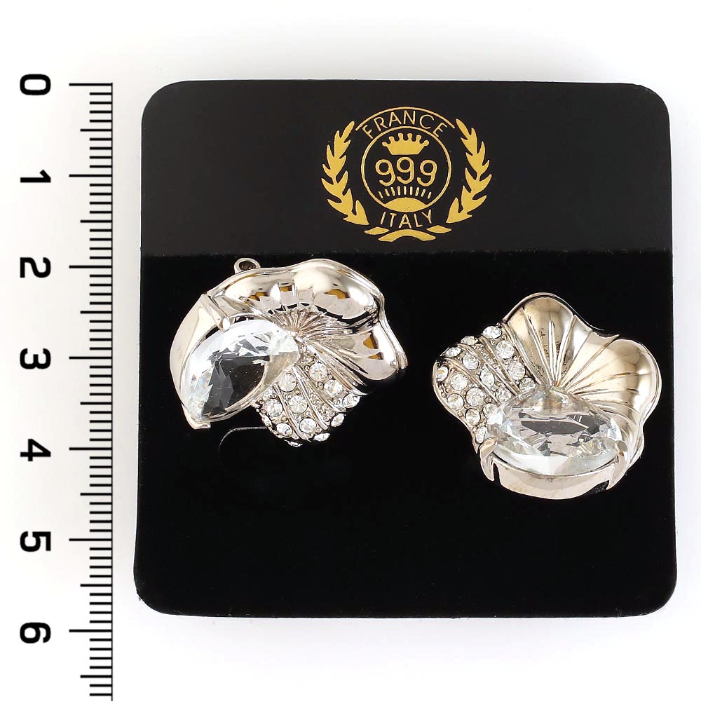 Серьги 999 серебро цветок из страз с белым хрусталём