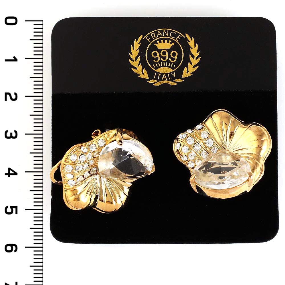 Серьги 999 золото цветок из страз с белым хрусталём