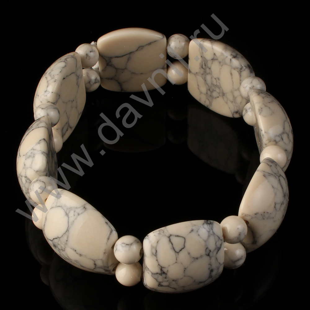 Браслет 6 мм с квадратами имитация камня кахолонг