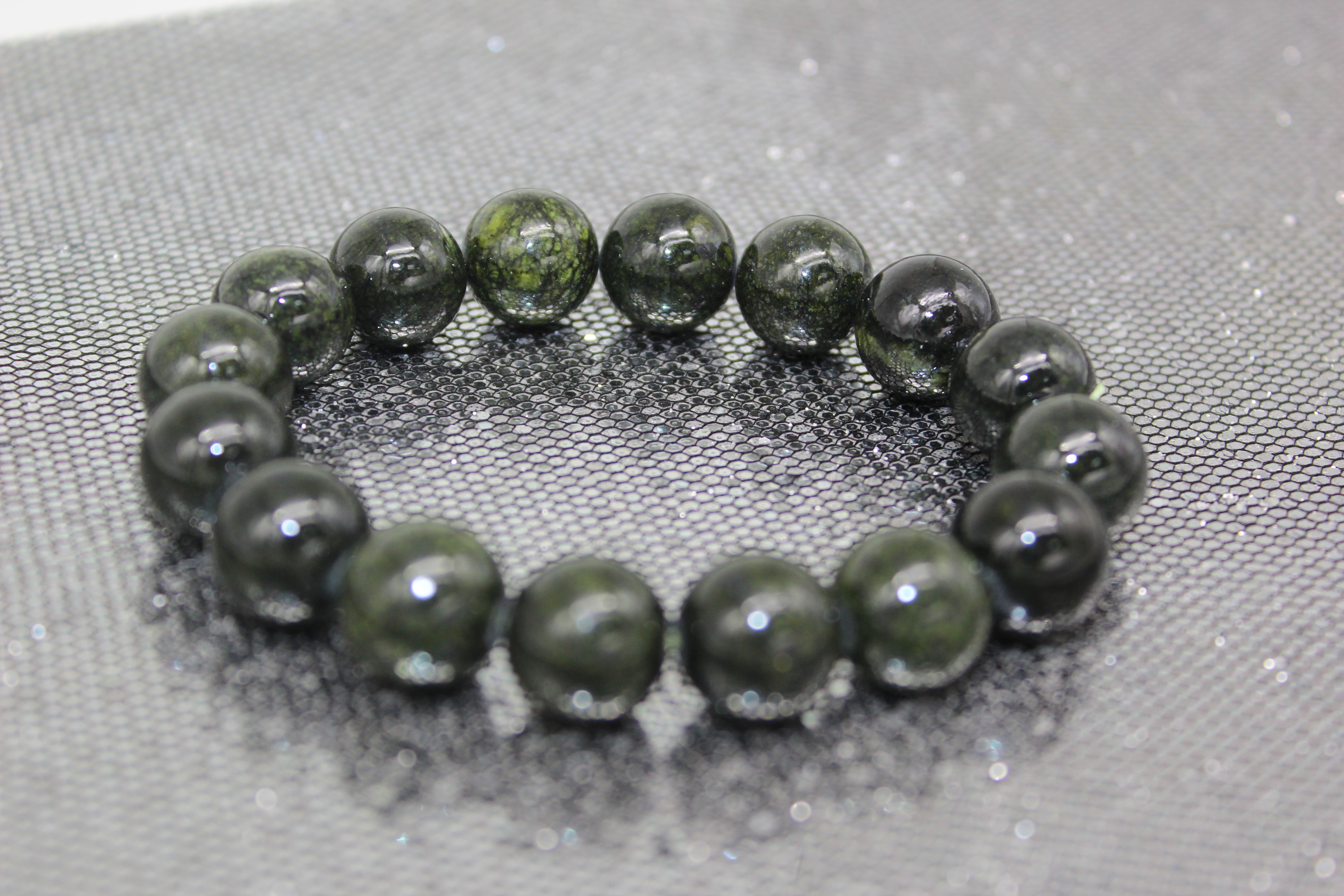 Браслет 12 мм имитация камня змеевик зелёный