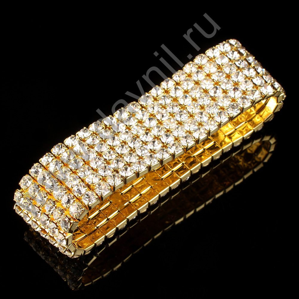 Браслет 6 рядов металлический со стразами золото