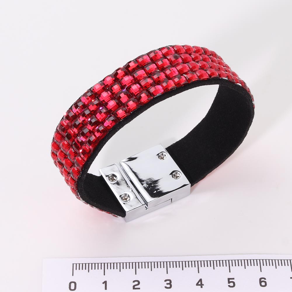 Браслет 4 ряда из страз на магните 18,5*1,8 см фуксия