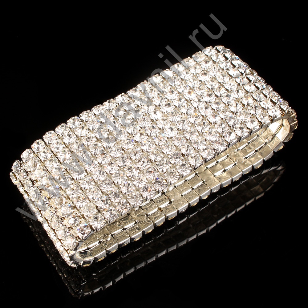 Браслет 10 рядов металлический со стразами серебро