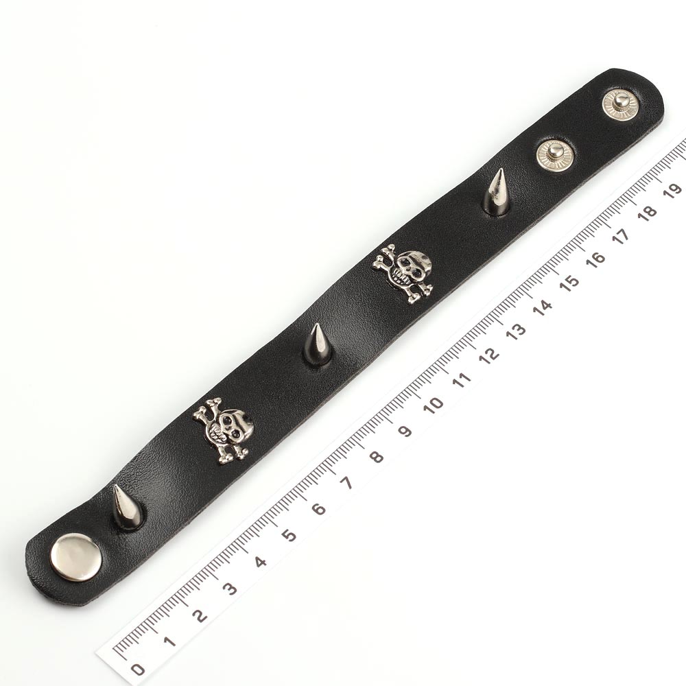 Браслет мужской с металлическими шипами и черепами чёрный