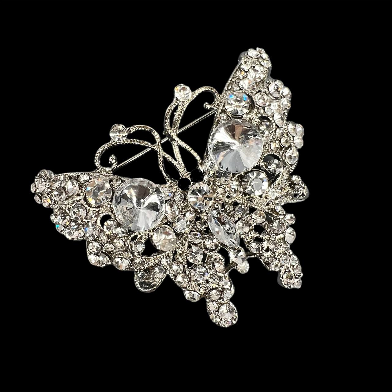 Брошь со стразами бабочка серебро