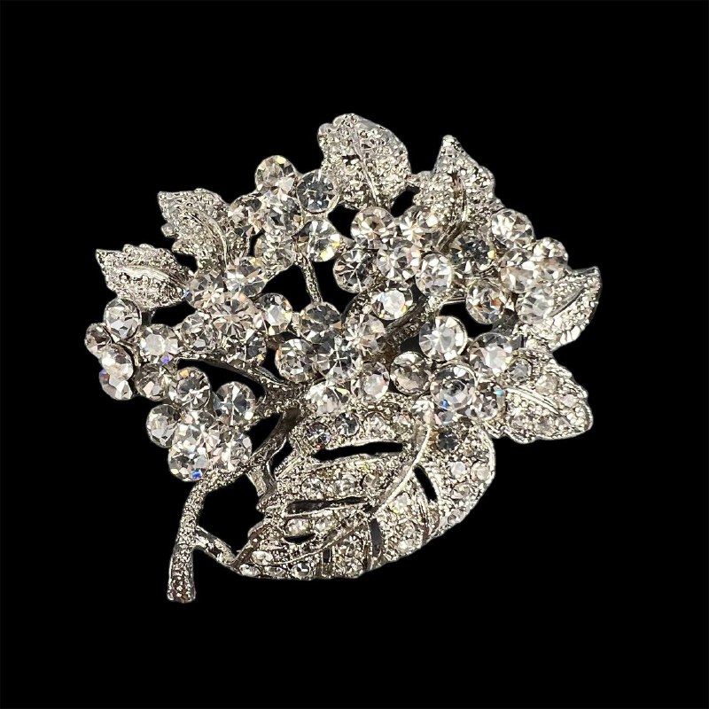 Брошь со стразами цветы с ажурными веточками серебро