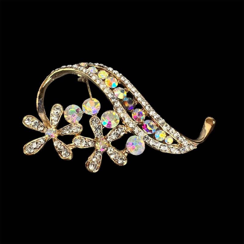Брошь цветок двойной со стразами золото 142