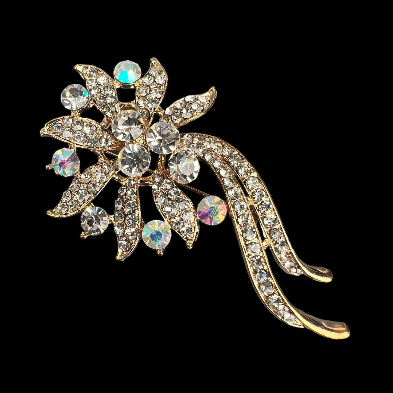 Брошь со стразами цветок золото