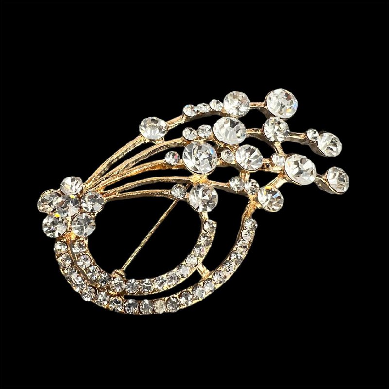 Брошь со стразами хвост павлина золото