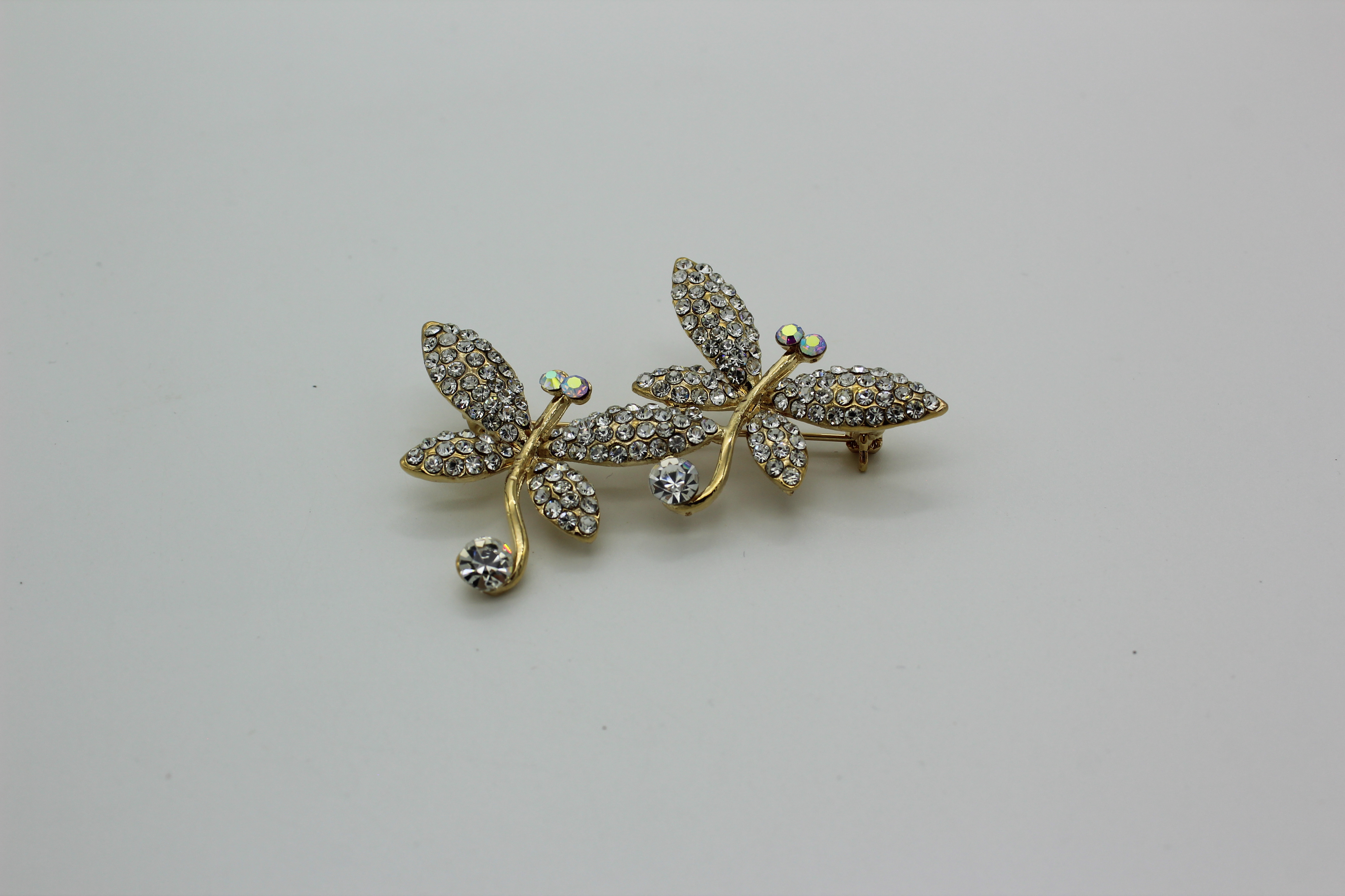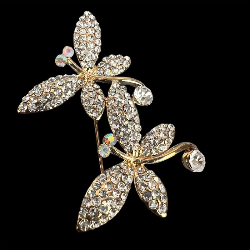 Брошь со стразами две бабочки золото