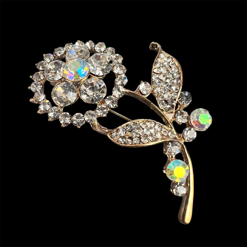 Брошь со стразами цветок золото