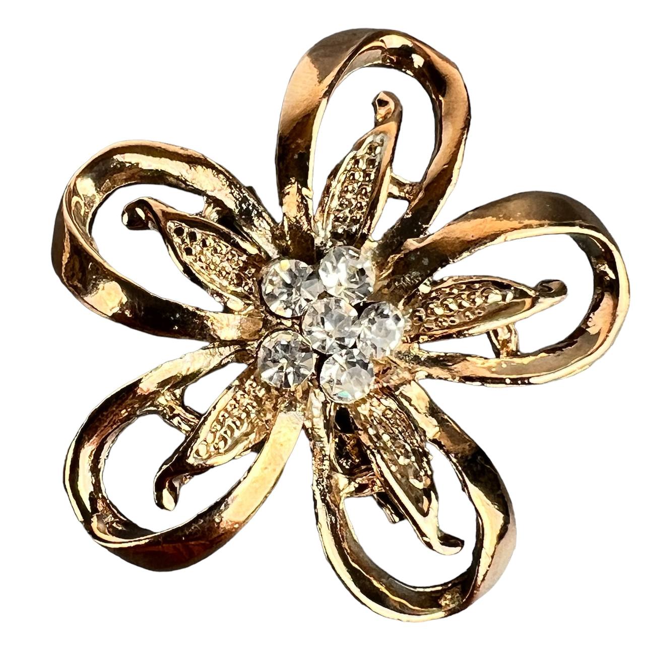 Брошь со стразами цветок золото