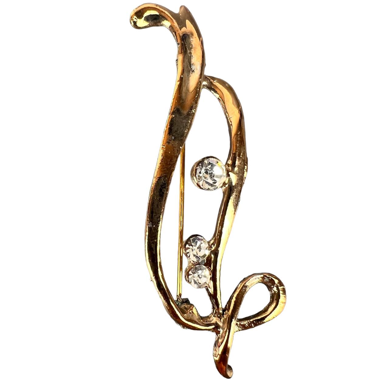 Брошь со стразами завиток золото