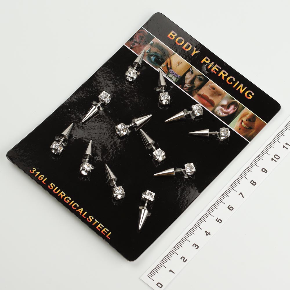 Пирсинг штанга кубик со стразами и конусом упаковка 12 шт