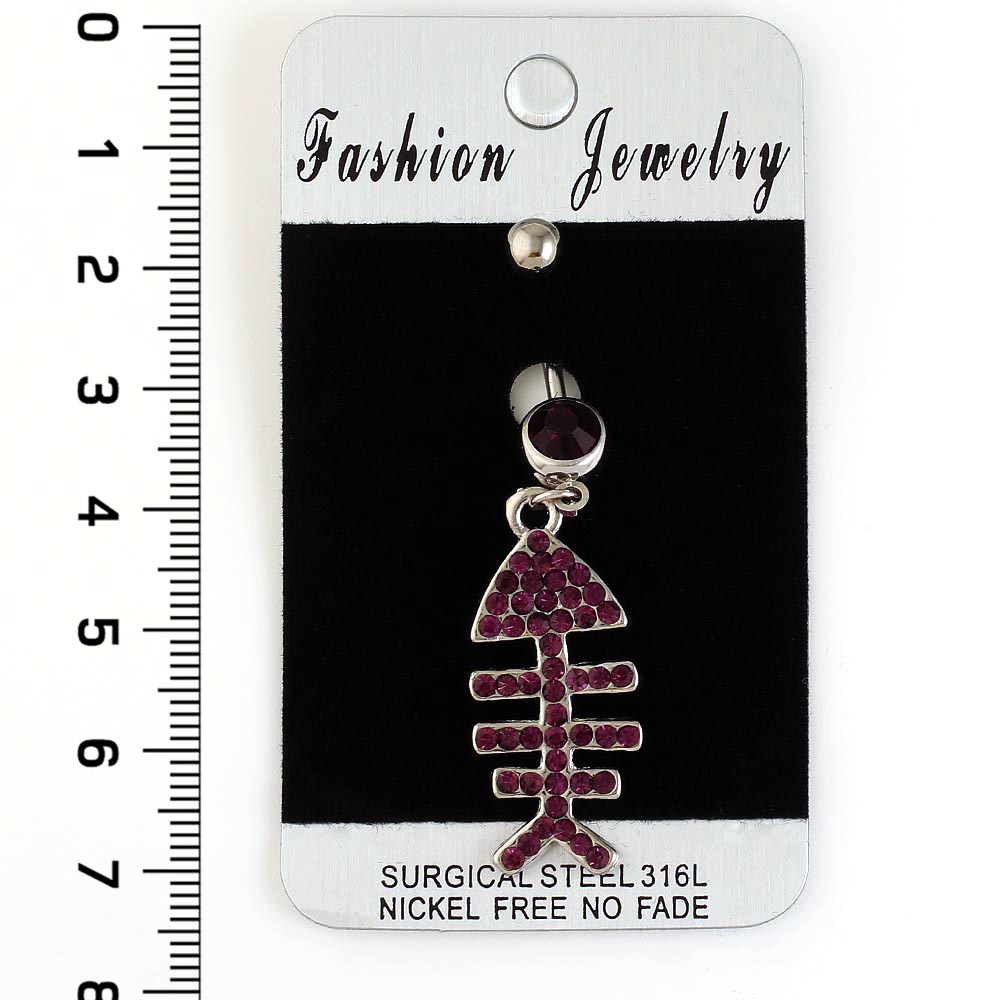 Пирсинг скелет рыбы с фиолетовыми стразами 1 шт