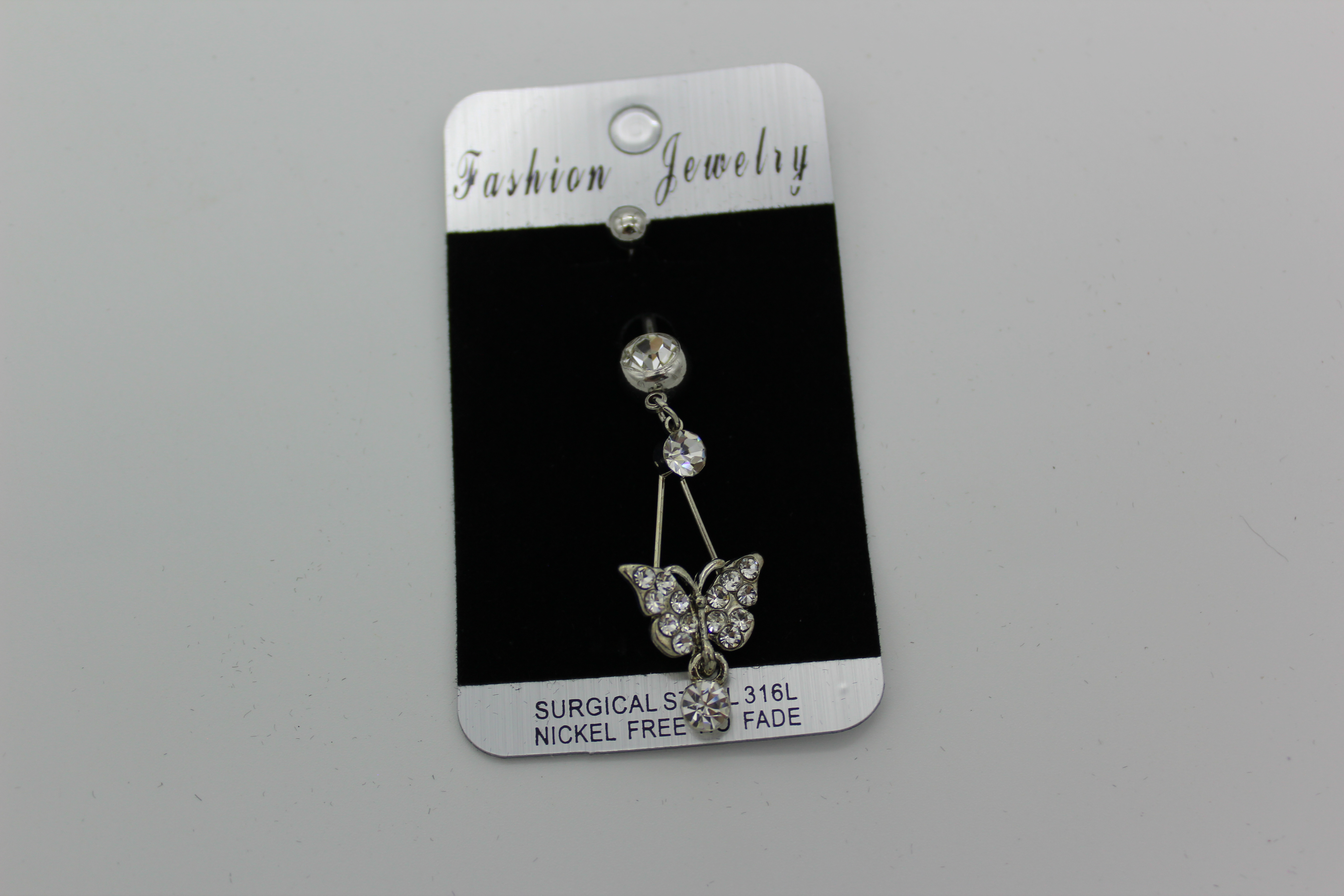 Пирсинг висюлька с бабочкой с белыми стразами 1 шт