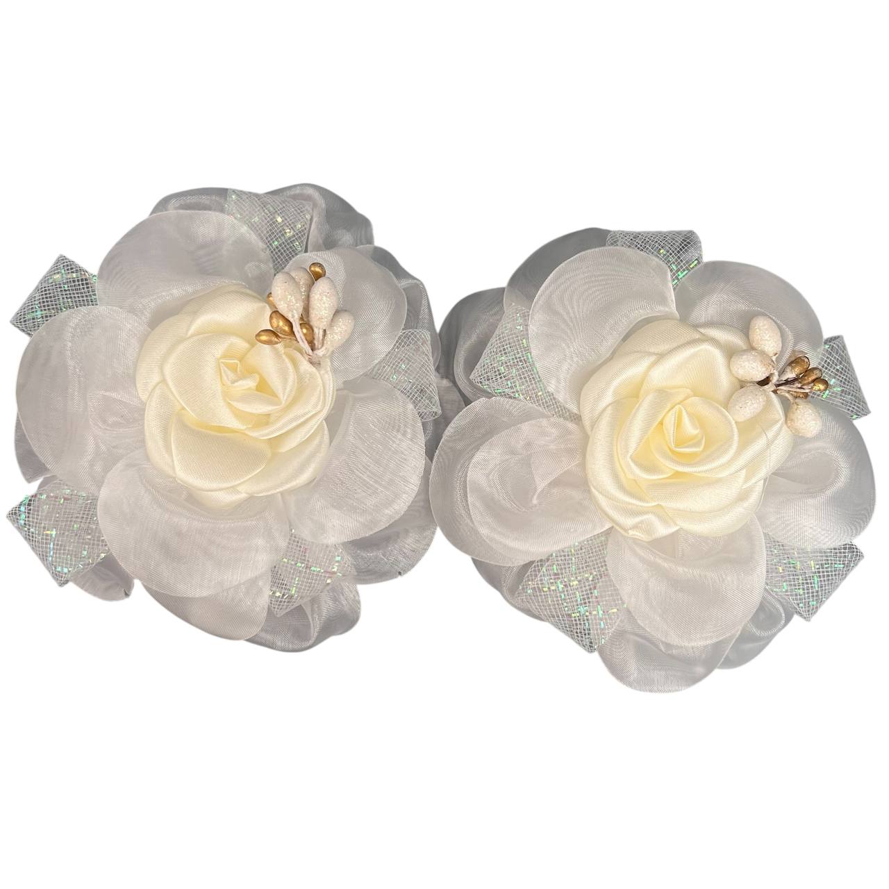 Бант на резинке белый с розой айвори 15 см 2 шт