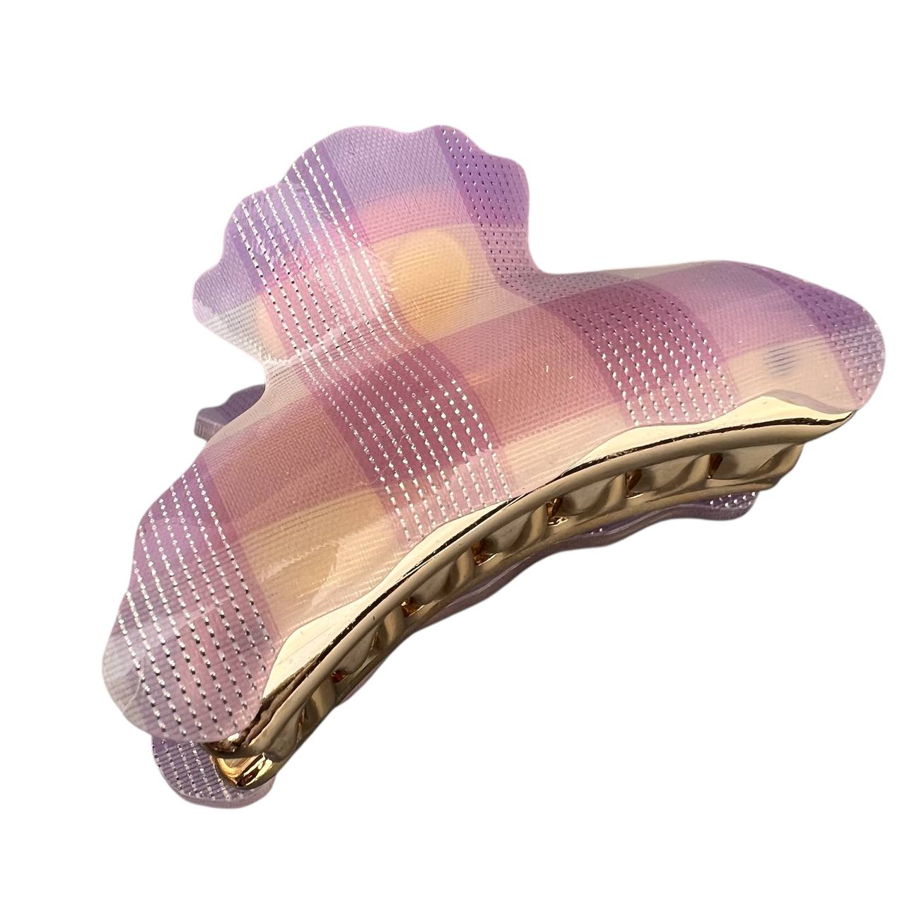 Краб для волос 7 см сиреневый крупная клетка
