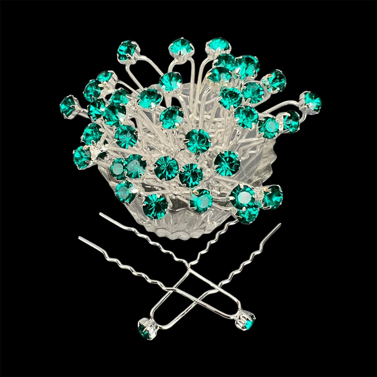 Шпильки для волос со стразами 6 мм 40 шт изумрудные 16/16