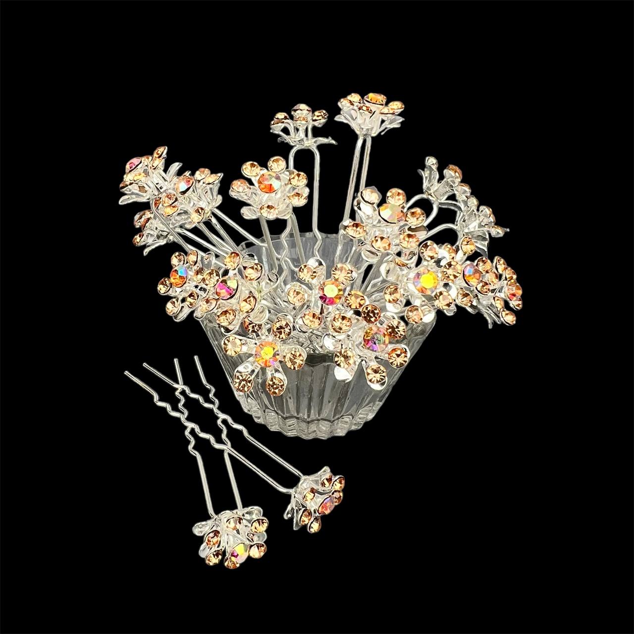 Шпильки для волос цветок из страз 15 мм 20 шт персиковые 26/3