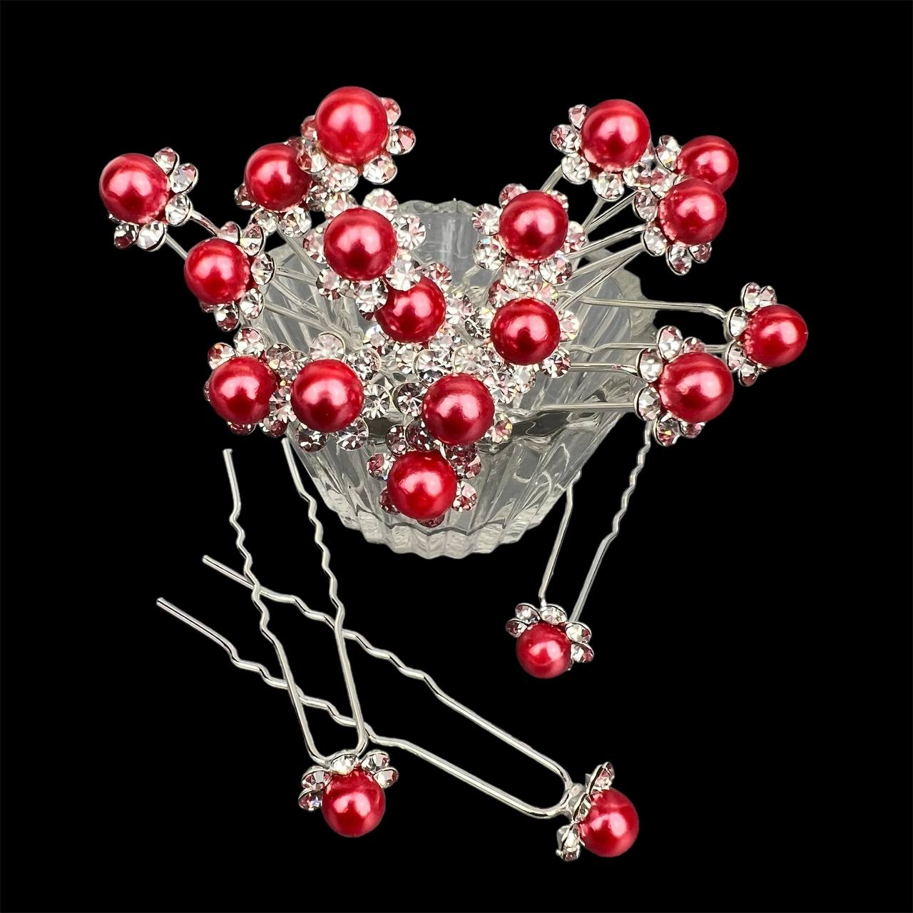 Шпильки для волос жемчуг со стразами 10 мм 20 шт кораловые 29/4