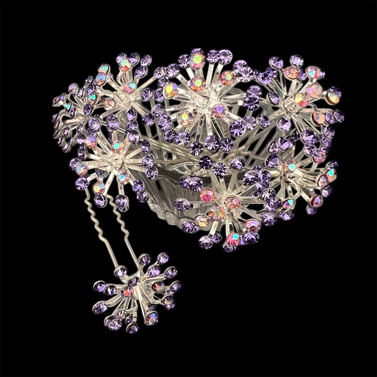 Шпильки для волос одуванчик со стразами 25 мм 20 шт сиреневые 33/10