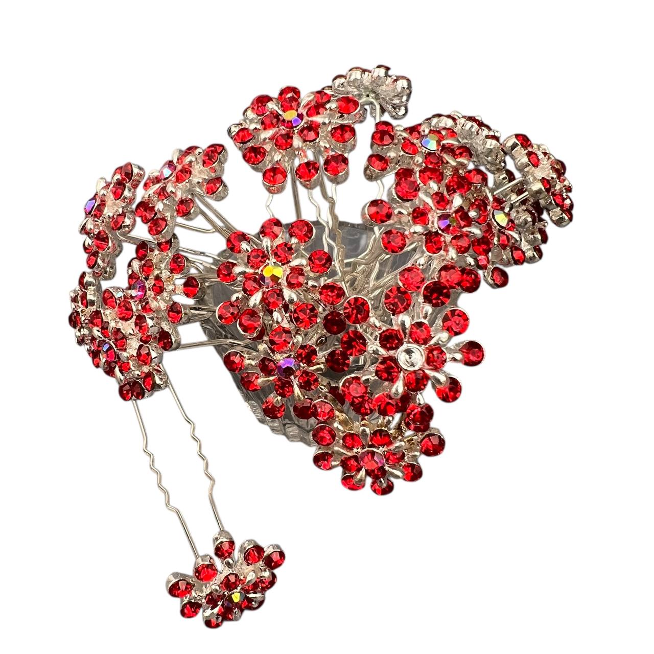 Шпильки для волос хризантема со стразами 20 шт красные 31/9