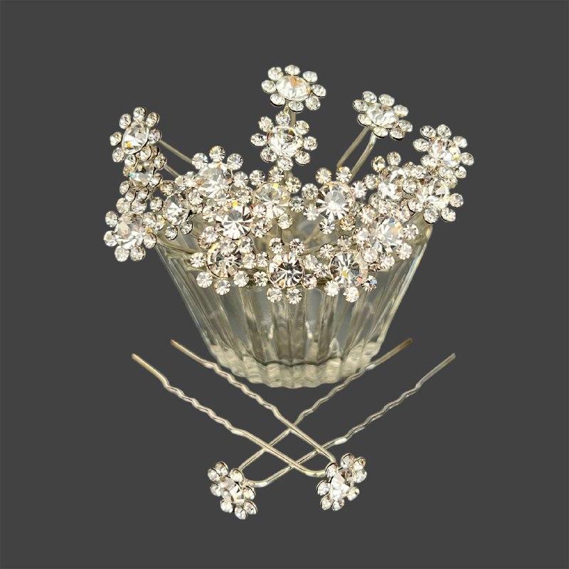 Шпильки для волос ромашка из страз 12 мм 20 шт белые 21/1