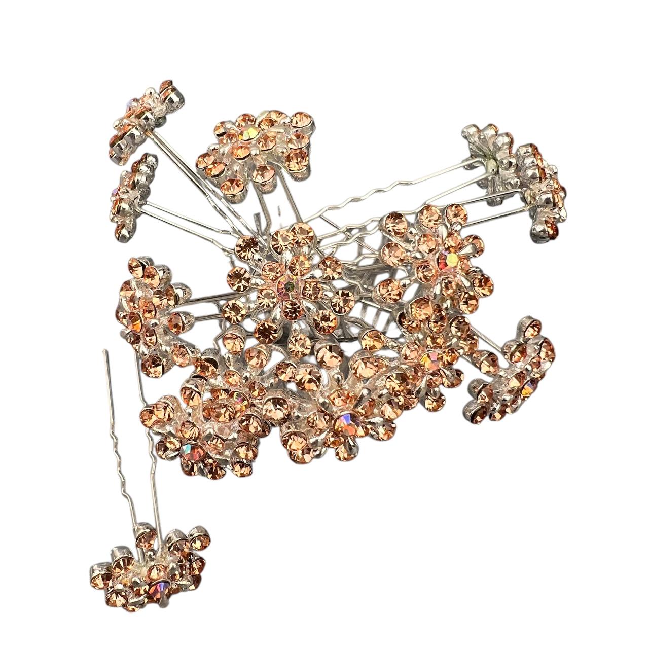 Шпильки для волос хризантема со стразами 20 шт персиковые 31/7