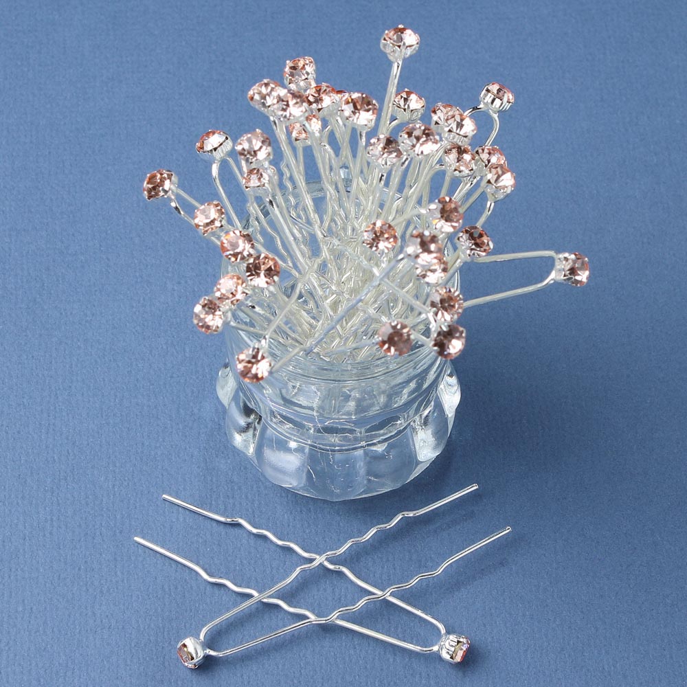 Шпильки для волос со стразами 6 мм 40 шт персиковые 16/9
