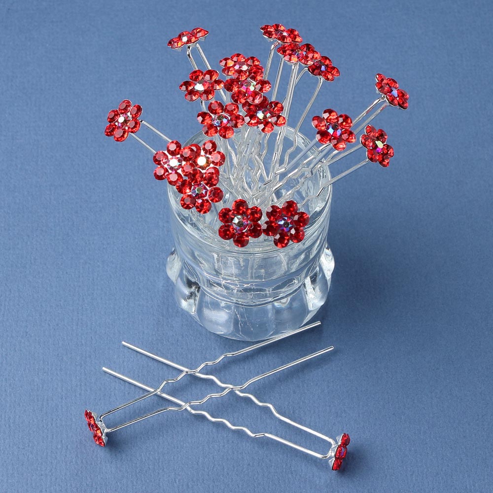 Шпильки для волос цветок из страз 12 мм 20 шт красные 15/4