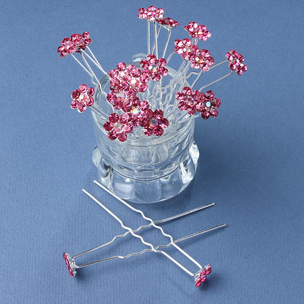Шпильки для волос цветок из страз 12 мм 20 шт ярко-розовые 15/9