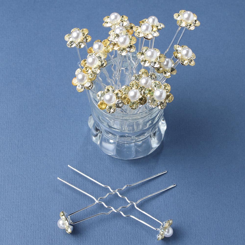 Шпильки для волос цветок из страз с жемчугом 20 шт айвори 17/1
