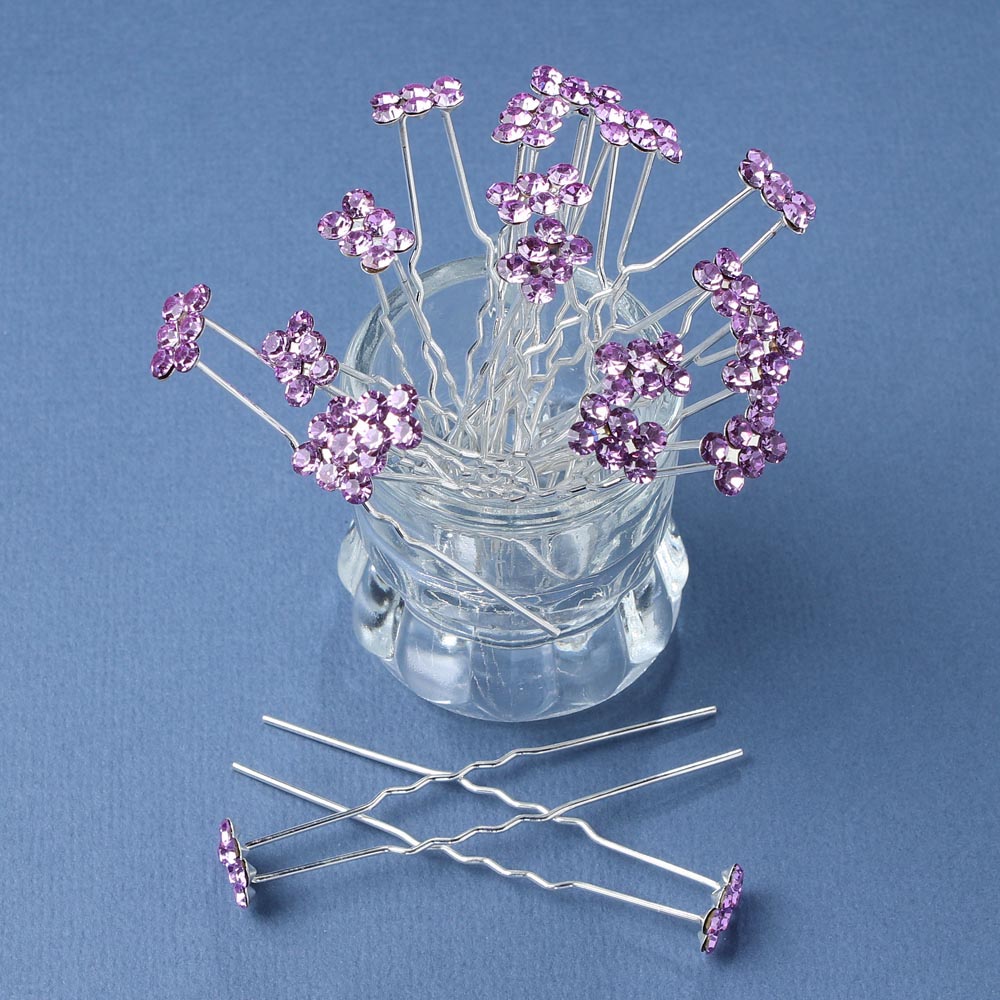 Шпильки для волос со стразами 20 шт сиреневые 20/4