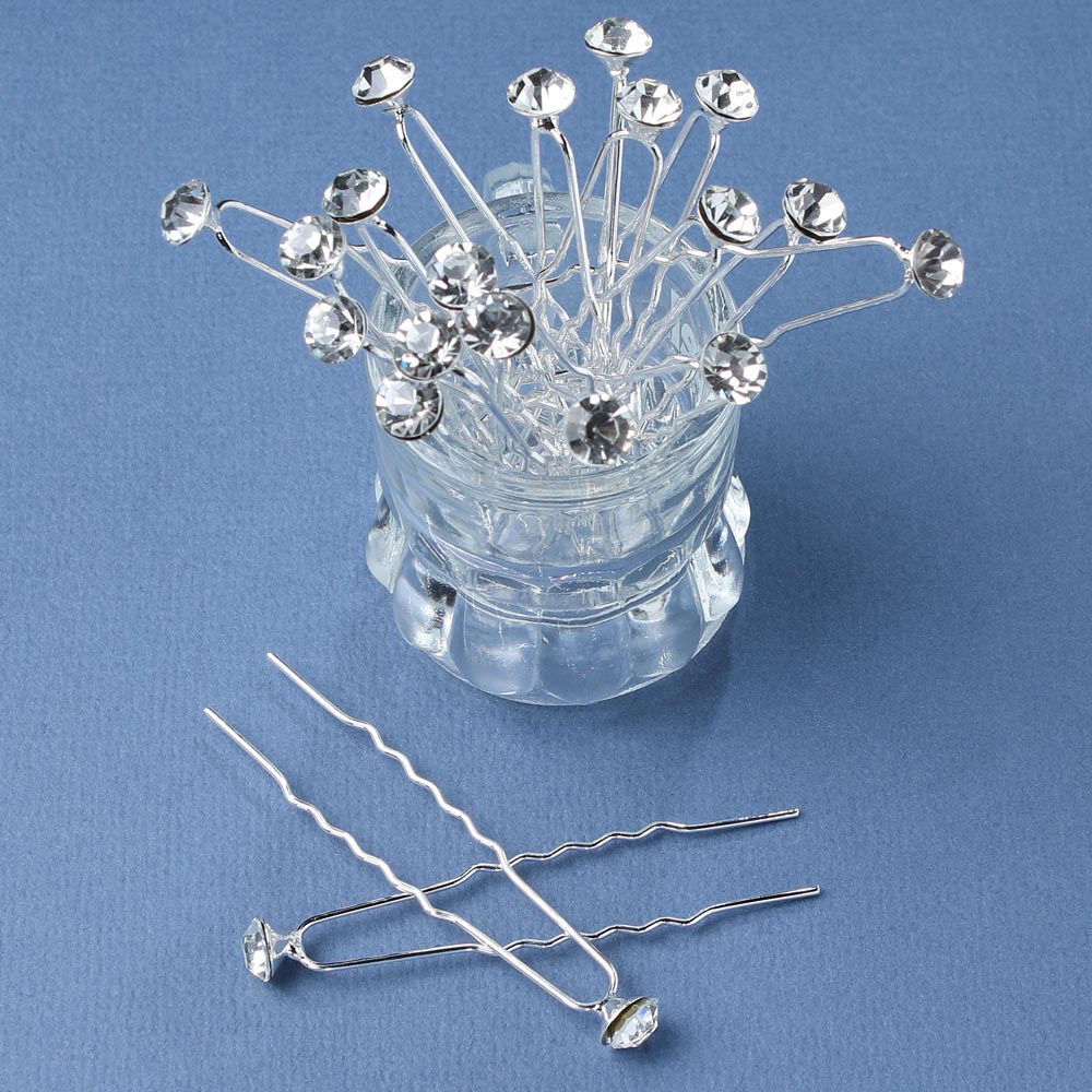 Шпильки для волос с крупной стразинкой 8 мм 20 шт белые 24/1